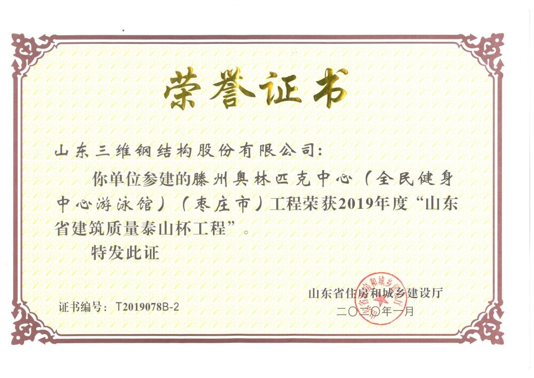 品质铸就典范,创新激发活力,是复杂市场环境下品牌屹立不倒的至高法则。荣获“泰山杯”奖,是对过往品质的认可。未来,三维钢构必将秉承匠心、严抓标准,以自身强劲的品质与实力,助力城市更好发展。