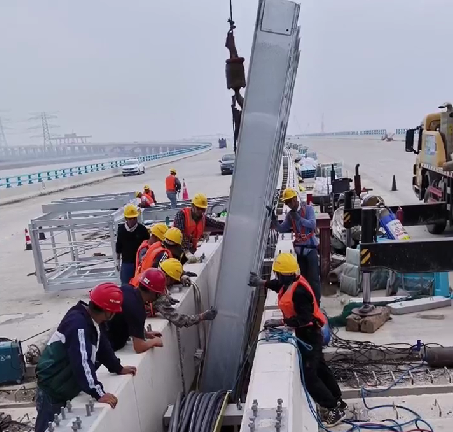 据了解,8月26日晚,三维接到衡达集团的杭甬复线宁波一期S1合同段检修平台项目,要求对该项目的6套检修平台(总重量约70多吨)进行检修安装。由于海上作业外加天气恶劣现场安装难度很大。时间紧张,工程部的同事连夜研究并制定详细周密的安装方案。8月27日一早,立即组织精干人员奔赴现场,开始紧张有序的安装工作。